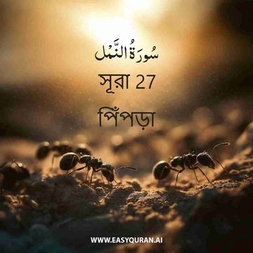 এই মাক্কী সূরাটি সুলাইমান (আঃ)-এর পিঁপড়াদের সাথে (যার নামানুসারে সূরার নামকরণ), একটি হুদহুদ পাখি এবং সাবা’র রানীর সাক্ষাতের বর্ণনা দেয়—যা অন্য কোনো সূরায় উল্লেখ নেই। আল্লাহর সৃষ্টি ও রিযিক দানের ক্ষমতাকে প্রতিমাগুলোর অক্ষমতার বিপরীতে তুলে ধরা হয়েছে। মুশরিকদের জন্য কিছু সতর্কতামূলক দৃষ্টান্ত দেওয়া হয়েছে এবং কেয়ামতের ভয়াবহতার সতর্কবাণীও দেওয়া হয়েছে। নবী (সাঃ)-কে কুরআনের সত্যতা সম্পর্কে আশ্বস্ত করা হয়েছে এবং বলা হয়েছে যে, তাঁর দায়িত্ব কেবল বার্তা পৌঁছে দেওয়া। বিচারের ভার একমাত্র আল্লাহর উপর। আল্লাহর নামে—যিনি পরম দয়ালু, অসীম মেহেরবান।