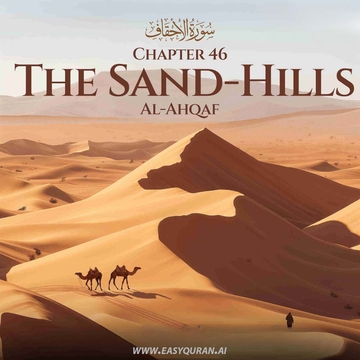 This Meccan sûrah takes its name from the sand-hills mentioned in verse 21 in the story of the people of Hûd (ﷺ) who were destroyed for their disbelief, even though they were far superior to the Arab pagans (verses 21-28). Again, Allah’s infinite power is contrasted with the powerlessness of the idols. The pagan arguments against the Quran and the Resurrection are refuted, and reference is made to a group of jinn who readily embraced the truth once they heard the Prophet’s recitation of the Quran. The Prophet (ﷺ) is urged to be patient, and reminded of the fate awaiting those who challenge the truth at the end of this sûrah and the beginning of the next. In the Name of Allah—the Most Compassionate, Most Merciful