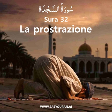 Questa sūrah meccana, che prende il nome dalle prostrazioni dei credenti in adorazione menzionate nel versetto 15, chiarisce che il Corano è una rivelazione divina e che Allah Onnipotente è l'unico Creatore, il più capace di resurrezione. Analogamente alla sūrah precedente, si fa riferimento alle qualità dei credenti e dei miscredenti e alla ricompensa che attende ciascuno. Sia la fine di questa sūrah che l'inizio della successiva esortano il Profeta (ﷺ) ad allontanarsi dai negatori e a non cedere loro. Nel Nome di Allah—il Compassionevole, il Misericordioso.