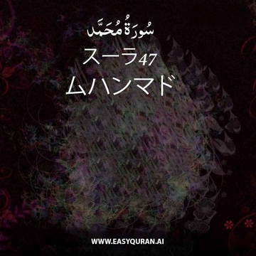 1. 不信仰であり、アッラーの道から妨げる者たち、かれは彼らの行いを無にされる。 2. 信仰し、善行に励み、かれらの主からの真理としてムハンマドに啓示されたものを信じる者たち、かれは彼らの罪を赦し、彼らの状態を改善されるだろう。 3. それは不信者たちが虚偽に従い、一方、信仰者たちはかれらの主からの真理に従うからである。このようにしてアッラーは人々に彼らの真の状態を示されるのである。