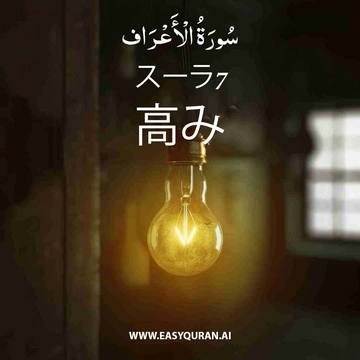 このスーラは、46節で言及されている高みにちなんで名付けられています。他の多くのメッカ啓示のスーラと同様に、この章は、自らの民によって否定された以前の預言者たちの物語と、その否定者たちがいかにして最終的に滅ぼされたかを語っています。前のスーラ(6章10-11節)で述べられているように、これらの物語は、預言者(彼にアッラーの平安と祝福あれ)を安心させ、彼の民にアッラーの懲罰を警告することを意図しています。シャイターン(悪魔)の傲慢さと、アーダム(アダム)の誘惑と堕落の物語が詳述されており、信者たちがシャイターン(悪魔)の囁きに用心するための教訓も含まれています。ここで述べられている楽園と地獄に関する詳細(36-53節)は、これまでのどのスーラにも比類ないものです。偶像の無力さがさらに強調されています。アッラーと彼の預言者たちへの完全な服従が、このスーラと次のスーラで強調されています。 慈悲深く、慈愛あまねきアッラーの御名において