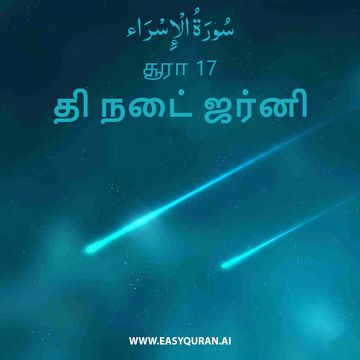 1. மகத்துவம் மிக்கவன் அவன், தன் அடியாரை (முஹம்மதை) இரவில் மஸ்ஜிதுல் ஹராமிலிருந்து மஸ்ஜிதுல் அக்ஸாவிற்கு அழைத்துச் சென்றான். அதன் சுற்றுப்புறங்களை நாம் அருள்வளம் பொழிந்தோம், நம்முடைய அத்தாட்சிகளில் சிலவற்றை அவருக்குக் காண்பிப்பதற்காகவே. நிச்சயமாக, அவனே செவியுறுபவன், உற்று நோக்குபவன். 2. மேலும், நாம் மூஸாவுக்கு வேதத்தைக் கொடுத்தோம்; அதை இஸ்ராயீலின் சந்ததியினருக்கு வழிகாட்டியாக்கினோம். (அதில்:) "என்னை அன்றி வேறு எந்தப் பொறுப்பாளனையும் நீங்கள் எடுத்துக்கொள்ளாதீர்கள்" (என்று கூறினோம்). 3. நூஹுடன் (கப்பலில்) நாம் சுமந்து சென்றவர்களின் சந்ததியினரே! நிச்சயமாக, அவர் நன்றி செலுத்தும் அடியாராக இருந்தார்.