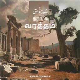 6. அவர்களிலுள்ள பிரமுகர்கள் புறப்பட்டுச் சென்று கூறினார்கள்: "நீங்கள் (உங்கள் வழியில்) செல்லுங்கள், உங்கள் தெய்வங்களின் வழிபாட்டில் உறுதியாக நில்லுங்கள். நிச்சயமாக இது ஒரு சூழ்ச்சியே." 7. இதை நாங்கள் முந்தைய மார்க்கத்தில் கேட்டதே இல்லை. இது இட்டுக்கட்டப்பட்ட ஒன்றேயன்றி வேறில்லை. 8. "நினைவூட்டல் எங்களில் இவருக்கு மட்டுமா அருளப்பட்டது?" மாறாக, அவர்கள் எனது நினைவூட்டல் குறித்து சந்தேகத்தில் இருக்கிறார்கள். மாறாக, அவர்கள் இன்னும் எனது வேதனையைச் சுவைக்கவில்லை. 9. அல்லது, மிகைத்தவனும், கொடையாளியுமான உமது இறைவனின் அருளின் கருவூலங்கள் அவர்களிடம் இருக்கிறதா? 10. அல்லது வானங்கள் மற்றும் பூமியின் ஆட்சியும், அவற்றுக்கு இடையில் உள்ள அனைத்தும் அவர்களுக்குச் சொந்தமானதா? அப்படியானால் அவர்கள் (வானத்திற்குச் செல்லும்) வழிகளில் ஏறிச் செல்லட்டும்.