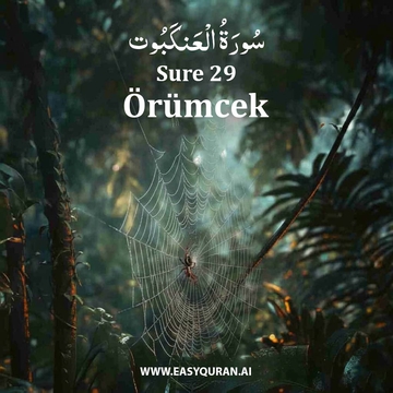 Bu Mekkî sure, adını 41. ayetteki örümcek meselinden alır. Surenin başlangıcı, gerçekten sebat edenlerle etmeyenleri ortaya çıkarmakta imtihanlar ve sıkıntıların rolünü vurgular. Nuh, İbrahim, Lut ve Şuayb sebatlarıyla anılırlar. Çeşitli kavimlere ve hakikati inkârları yüzünden farklı şekillerde helak edilişlerine değinilir (40. ayet). Peygamber'e ve Kur'an'a karşı müşriklerin iddiaları etraflıca çürütülür. Sure, Allah'a tevekkül edenleri ve O'nun yolunda gayret edenleri överek sona erer. Bu sonuç, bir sonraki surenin başlangıcına zemin hazırlar. Rahman ve Rahim Allah'ın Adıyla