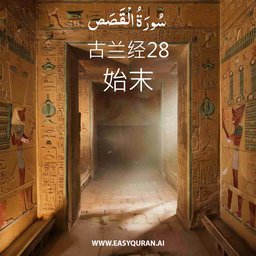 1. 塔、辛、米姆。 2. 这些是明白的经典中的节文。 3. 我们向你(穆圣)以真理叙述穆萨和法老故事的一部分,以供信道的人们。 4. 诚然,法老在地上自高自大,把那地的居民分为若干派别,其中一部分人,他加以迫害,屠杀他们的男丁,留下他们的妇女。他确是作恶者之一。 5. 我们却要施恩于地上被欺压者,使他们成为表率和继承者; 6. 并使他们在地上得势;并通过他们,让法老、哈曼和他们的军队看到他们所畏惧的。